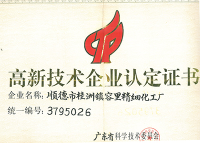 1995年,榮獲廣東省高新技術(shù)企業(yè)