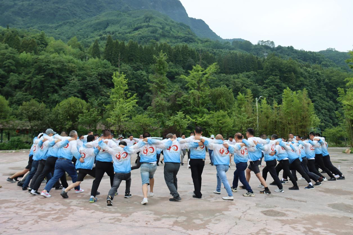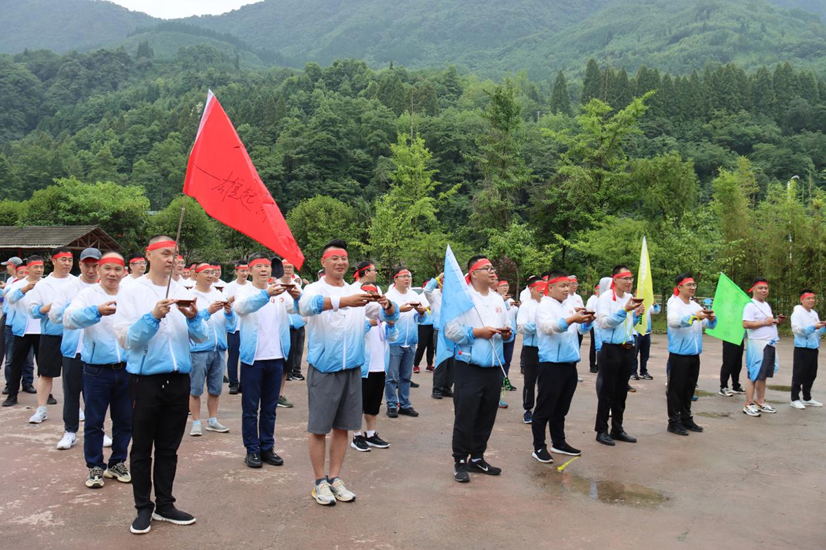 徒步活動是在距離什邡幾十公里的都江堰虹口訓練基地進行的,60多名領導同事們經過一系列隊形分組,隨機組合成4個小組,他們是:非凡隊、雄起隊、千帆競發隊、勇闖天涯隊,每個隊都有自己的隊名和口號,經過充分的準備活動,干了壯行酒,帶上干糧和水,踏上征途……。大約走了五十分鐘山路,教練說還不到十分之一的路程,個別同事身體出現了不適,于是原路返回,或許是明智的選擇。午飯是在一片原始森林里進行的,主要是自熱式米飯或面條。下午的路程最為艱辛,大約有5個多小時是在崎嶇泥濘山路上行走。帶頭的是一位向導,手持砍刀臨時開出了一條路,這些山路常年沒有人行走,很多地方連手機信號都沒有。山上經常下雨,道路大多泥濘,盡管在最危險的地方都拉了繩子,或有人搭手幫忙通過,但濕滑路段確實太多了,很多人都摔了無數跤。據教練統計,某隊員3分鐘摔了5跤,說的就是咱們李峰博士。就這樣,在大家的相互攙扶、相互鼓勵、相互幫助、相互陪伴下,除了個別隊員因傷退出了比賽之外,大多數人堅持到了最后。
