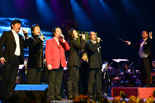 兩支組合帶來了18首廣為傳唱的經典曲目,其中,有《大海啊,故鄉》、《大阪城的姑娘》、《紅莓花開》、《山楂樹》、《莫斯科郊外的晚上》等老一代懷舊曲目;有《青花瓷》、《又見炊煙》、《張三的歌》、《野百合也有春天》等新生代廣為傳唱曲目;還有《一簾幽夢》、《你的眼神》、《恰似你的溫柔》等抒情曲目。在交響樂團的伴奏下,為到場的嘉賓和觀眾帶來了前所未有的優雅享受。
