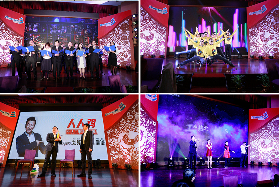在經營管理年會結束后,所有參會人員共同參加了春茗抽獎晚會,晚會按照慣例將節目表演與抽獎交叉進行,晚會節目由公司員工自編自導自演,內容豐富多彩,節目形式多樣,有公司領導員工同臺演唱《相親相愛一家人》,有研究院小鮮肉們帶來舞蹈《聞雞起舞》,有抨擊創業騙局的小品《創業》,有宣傳安全生產教育的相聲《我是安全員》,而《德美瓦克工作日志》將原本乏味的工作介紹用歌曲串燒的形式進行了趣味解讀,詼諧幽默,實在是新人培訓必備神曲。精彩的節目點燃了大家的激情,嘉賓中國染料工業協會秘書長劉洪山先生和中國工程院院士石碧先生情不自已地上臺一展歌喉,為晚會增輝。節目很精彩,抽獎更給力,抽獎不但獎品多多,穿插在節目之間的公司福利大獎有312份,而晚會的壓軸節目----三位老板現場即興派發140份樂透大獎。而且今年的微信抽獎方式,讓我們有了不同以往的新體驗。