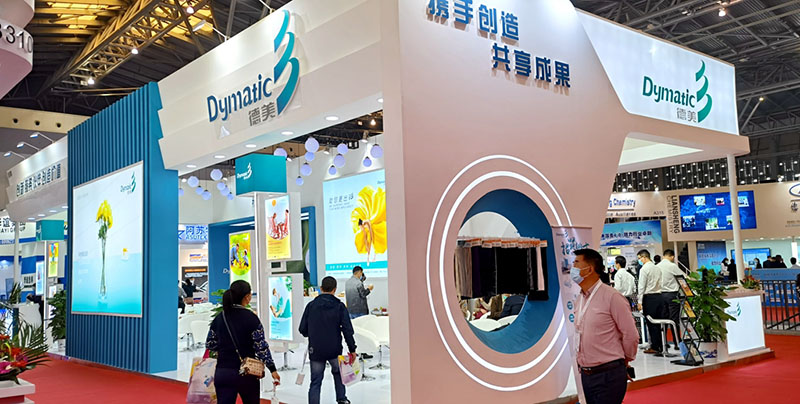 公司立足于行業領先性,重視并專注于高功能性、環保型新產品的研發,積極推動產品和技術升級,為客戶創造更大價值。在本次展會上,公司重點宣傳德美2020年的主推產品,包括抗菌抗病毒系列等功能性產品、低環體無溶劑嵌段硅油系列產品、棉針織平幅練漂技術、超細旦勻染劑、錦綸雙固色牢度提升方案、無氟防水劑系列、印花絨類增稠劑等等。