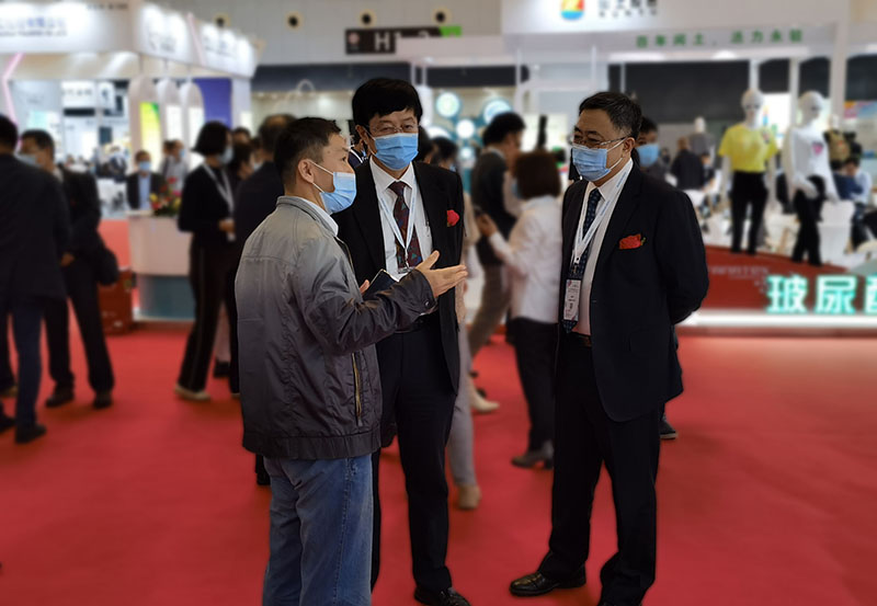 因為新冠疫情的原因,國內外經濟遭受嚴峻考驗,展會組織異常艱難,難得是展會雖遲但到,向外界展示了我們克服困難的決心和信心。11月8日上午,中國石化聯合會副會長李彬,中國染料工業協會會長史獻平等行業領導蒞臨展會,為參展企業站臺、加油打氣。